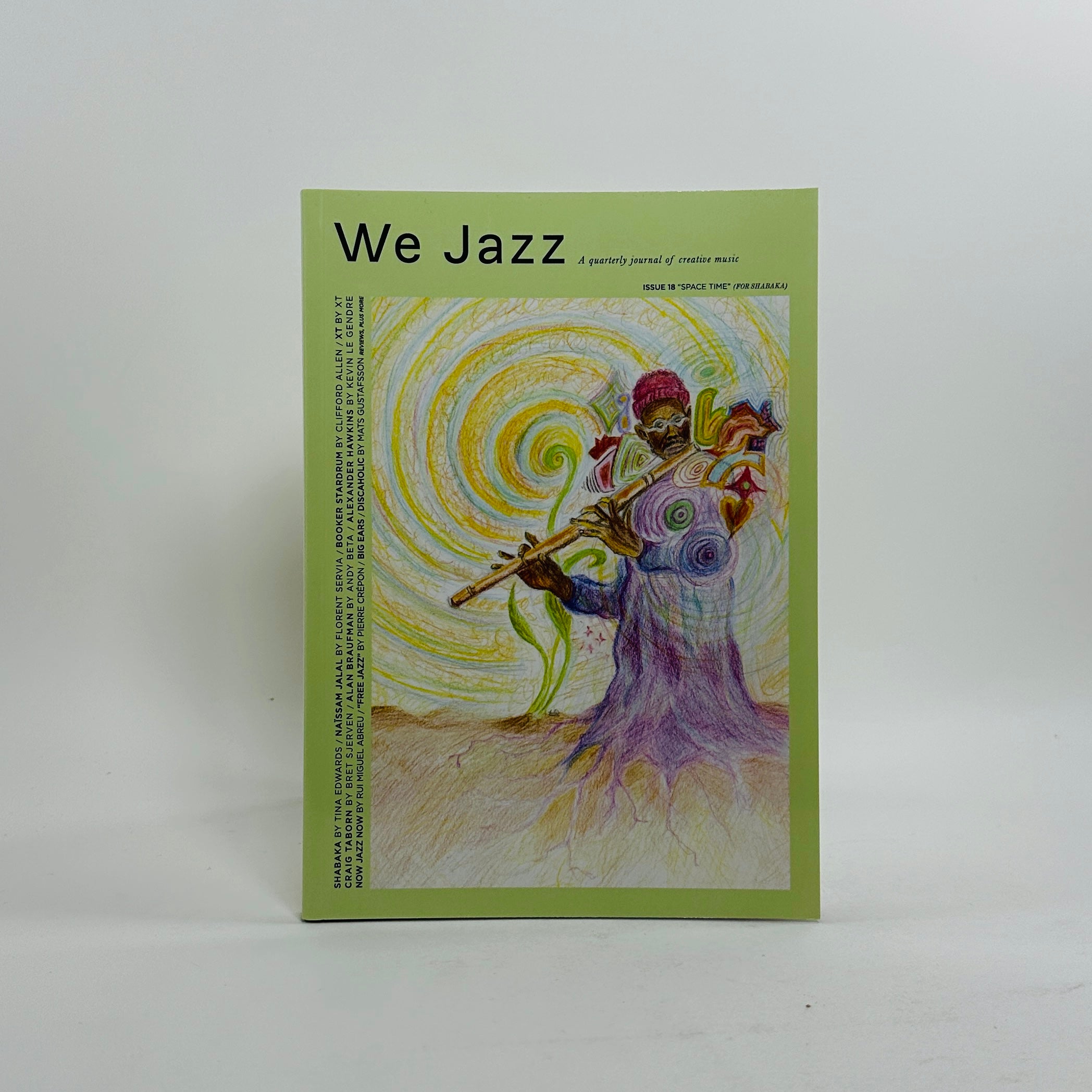 About We Jazz magazine: We Jazz Magazine is a quarterly journal of new stories about creative music. Published by the Helsinki-based label We Jazz, the magazine sheds light on often rarely featured artists, events and topics across the spectrum of creative music, both topical and historical. In addition to articles, the magazine includes album reviews plus notes on live events, books, design, etc. The magazine has a worldwide network of collaborators with names like Ashley Kahn, Peter Margasak, Debra Richards, Mats Gustafsson, Daniel Spicer, Stewart Smith, and many more contributing to the highly inspired narrative around the music. Designed by We Jazz artistic director Matti Nives, the magazine is pressed on 140g Edixion paper with laminated 300g Invercote covers in 174 x 240 mm size and each issue runs 128 pages deep. In other words, this is one of those titles you want to stack up on your shelves for good, for the stories will remain fresh and the lavish look underlines the “keepsake” quality of the publication. The title of each issue is dedicated to the cover piece, and each issue’s cover features a bespoke illustration of the cover story subject.