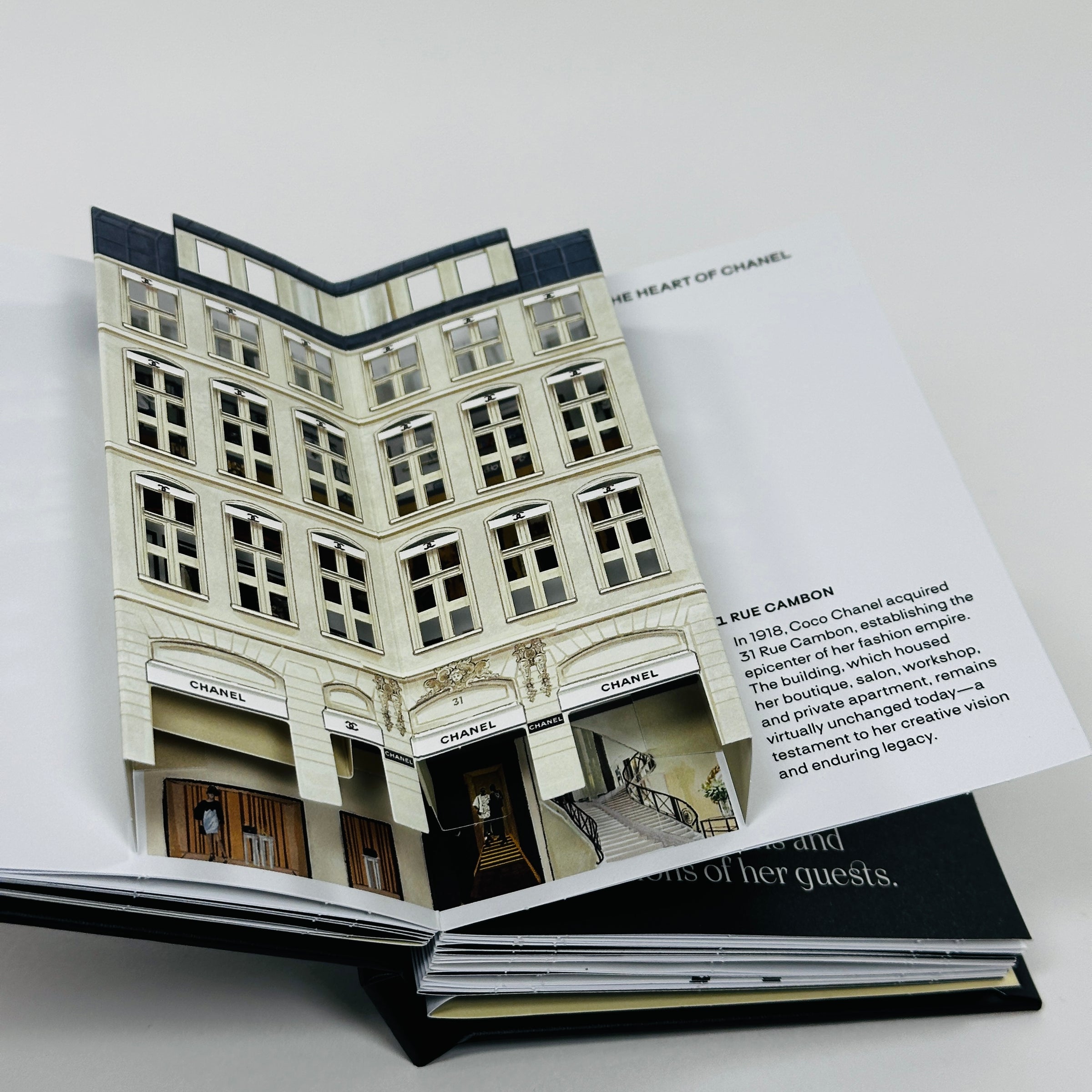 History Comes Alive - Discover Chanel's defining moments as each pop-up lifts signature designs off the page―the tweed jacket, two-tone shoes, and the iconic 2.55―capturing style milestones in breathtaking sculptural detail.