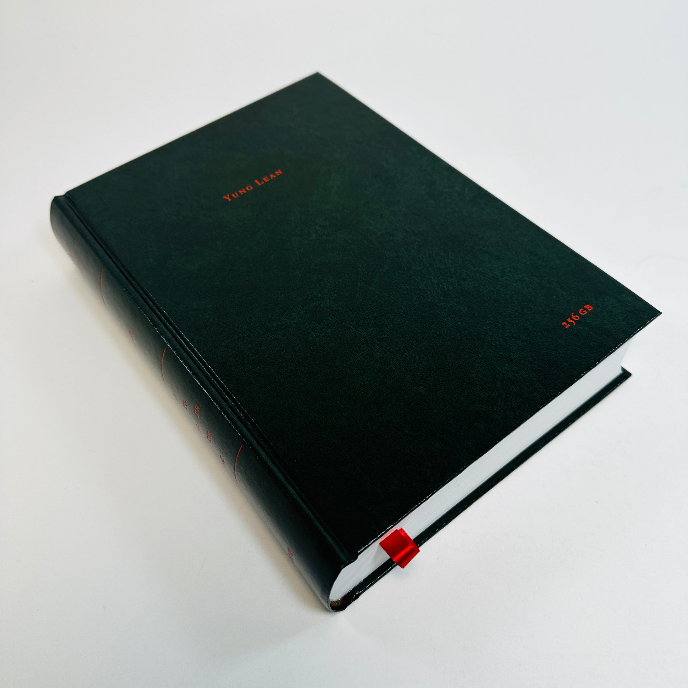 Collating 574 images shot across iPhone’s 6, 8, X & SE, the book exemplifies Yung Lean’s autonomous artistic production. The book was developed by OK-RM and Suzie&Leo in close collaboration with Yung Lean, together taking the intimate, extemporary images stored in Yung Lean’s personal photo library into a totemic classical book. Produced in Italy, the book’s material construction draws upon the 500-year-old tradition of bible-making of Legatoria Industriale Artigianale’s premises in Cava de' Tirreni. Red hot-foil typography graces a melanged green substrate. The spine paired with a red silk ribbon furthers the book’s aesthetic resonance. Each copy of the book is accompanied by a silver sticker sheet as a token of viral ephemera provoking the book’s classical endurance.