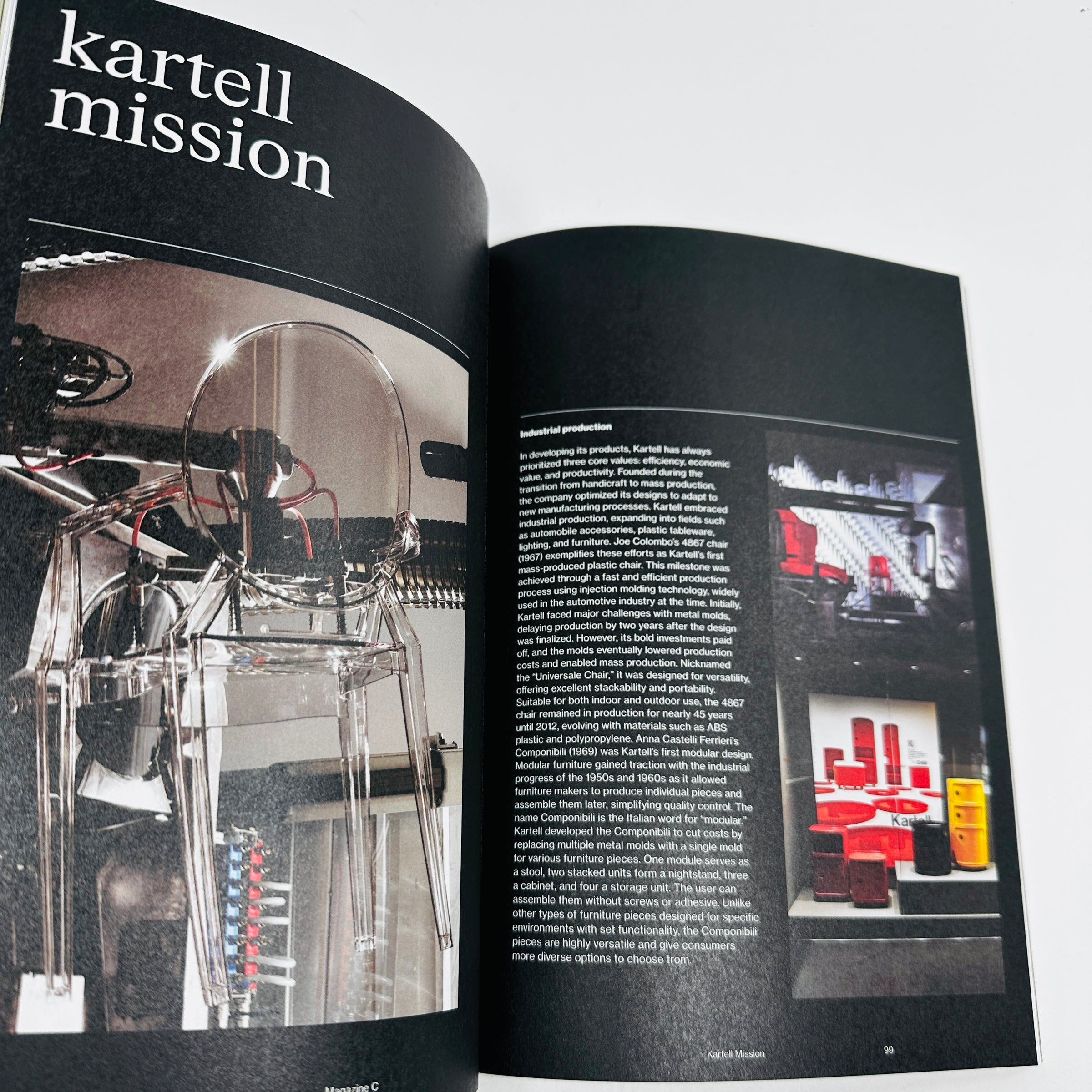The Louis Ghost chair, designed by Philippe Starck and produced by Italian furniture maker Kartell in 2002, is an exceptional, globally renowned chair that is elegant, sturdy, lightweight, and transparent. Drawing inspiration from the 18th-century baroque style, it features a classic design and innovative use of single-mold transparent polycarbonate. And while this armchair may be transparent, its presence is clear and bold as a timeless, iconic piece of furniture. Rather than harnessing extravagant details, however, it offers a quiet beauty that complements any space. The Louis Ghost chair’s versatile, high-quality plastic design has earned it lasting fame and continues to be a worldwide favorite. Magazine C is a chair documentary magazine made by grandeclip, building upon the brand of Magazine B. Starting with a single iconic chair, Magazine C encompasses design, lifestyle, and industry. The criteria for selecting iconic chairs as our main theme are as follows: Originality in configurations Implementation of innovative technology Innovational presence in the industry Influences on public lifestyle.